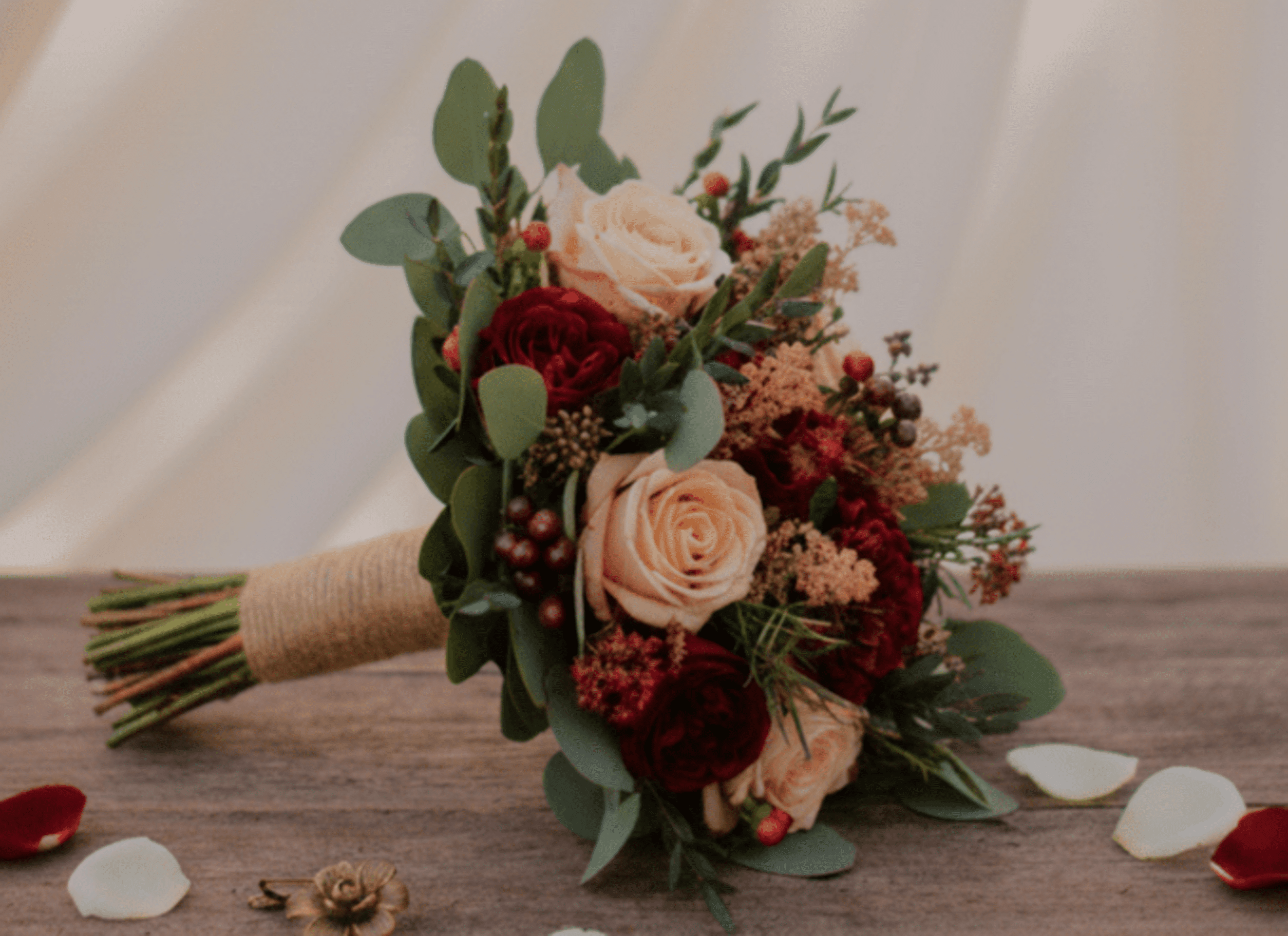 Ramo de novia de Otoño o Invierno: Color Crema y Burdeos