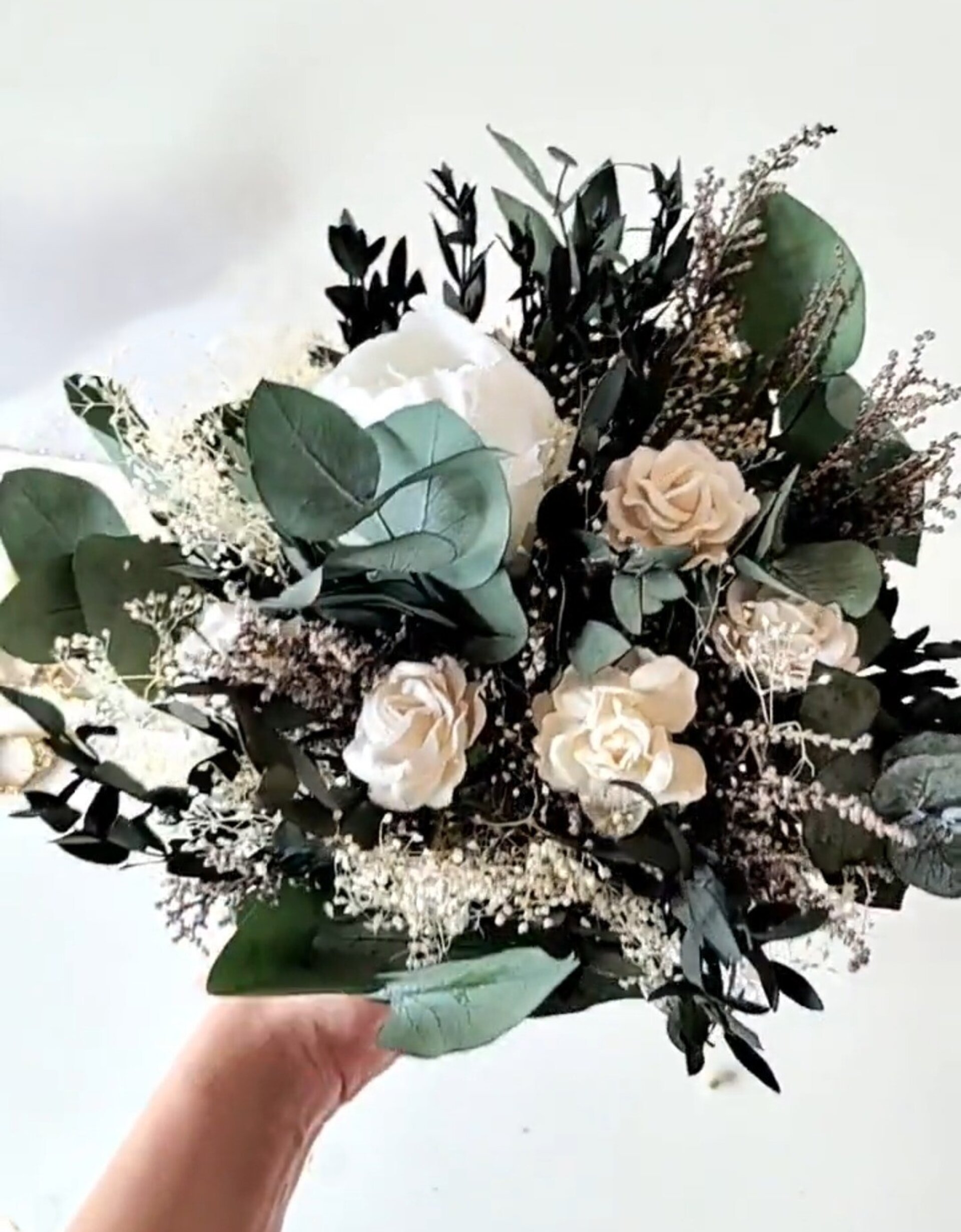 Ramo Bouquet de Paniculata con Hojas de Eucalipto Preservado o Espliego