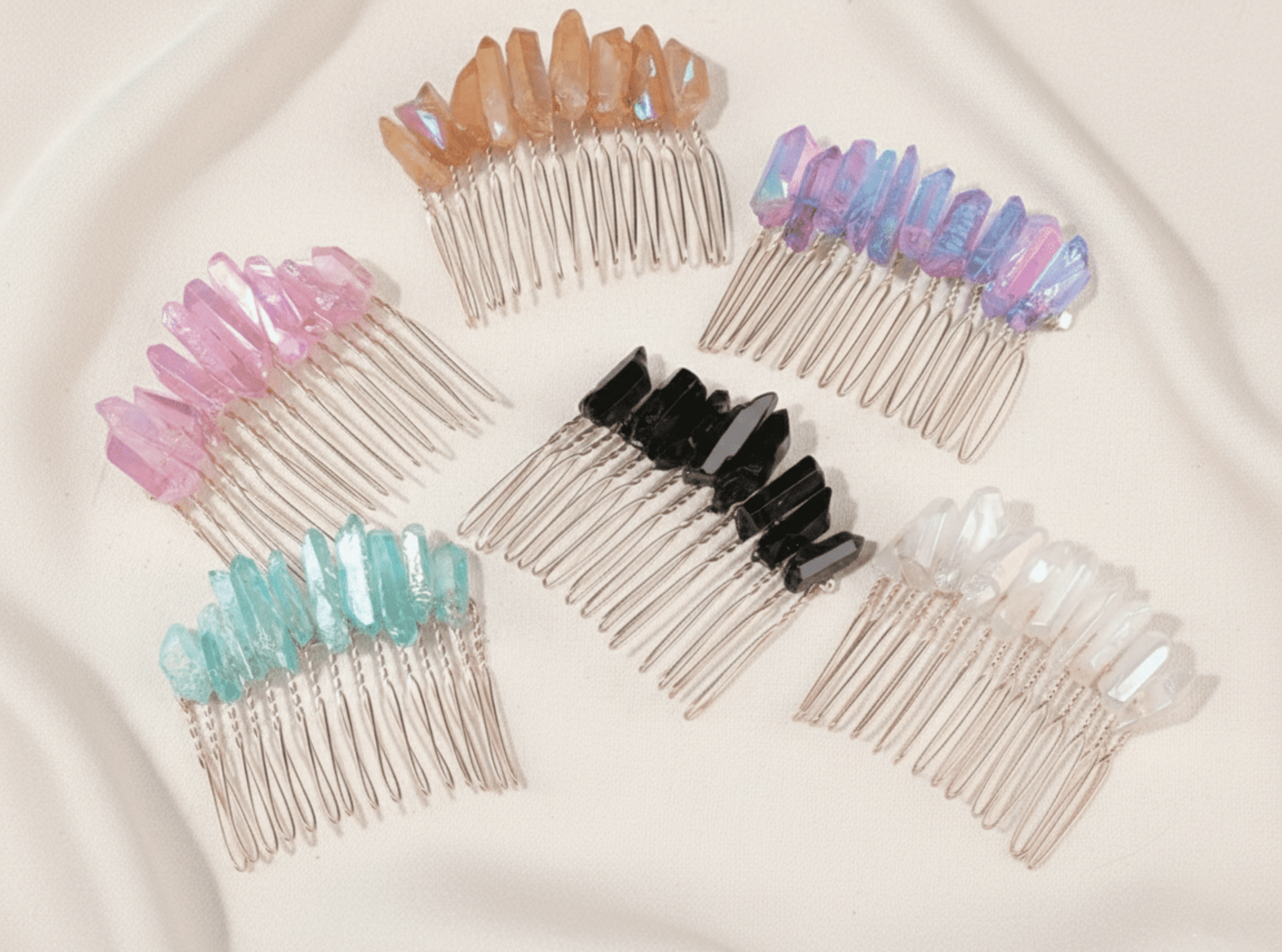 Peineta Dorelia Piedras de Cuarzo Engarzada Hecha a Mano